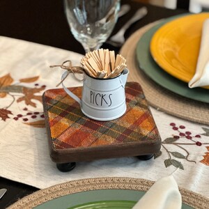 🥭 This super darling fall inspired wood riser makes for a lovely accent on your counter or table. An elevated place for your napkins, salt 🧂 n pepper shaker and toothpick holders!
